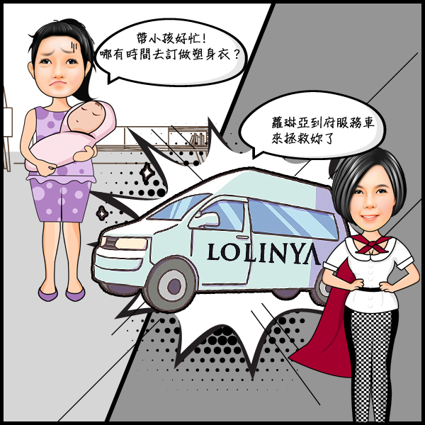 我是在懷孕時就跟蘿琳亞預訂,生產完蘿琳亞開專車到月子中心,幫我量身,塑身衣做好,蘿琳亞專車又送到我家,真是太貼心了