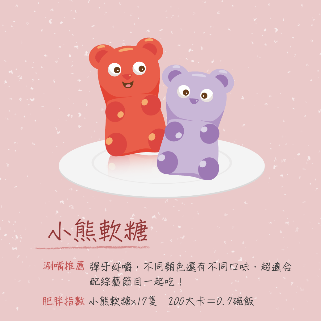1.花生  2.洋芋片 3.鳳梨酥  4.小熊軟糖  5.海苔