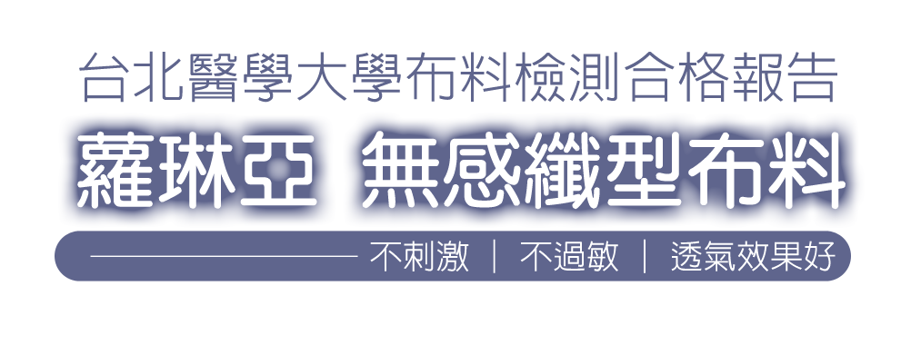 蘿琳亞無感纖型布料,經國際化標準組織規範ISO10993敏感測試,結果顯示無任何刺激反應,超透氣、高吸濕、快排汗。
