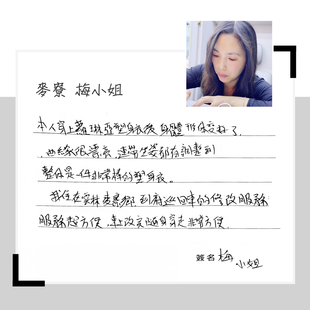 一通電話即可預約服務車,專業設計師及縫紉師傅到府,為您量身或修改塑身衣