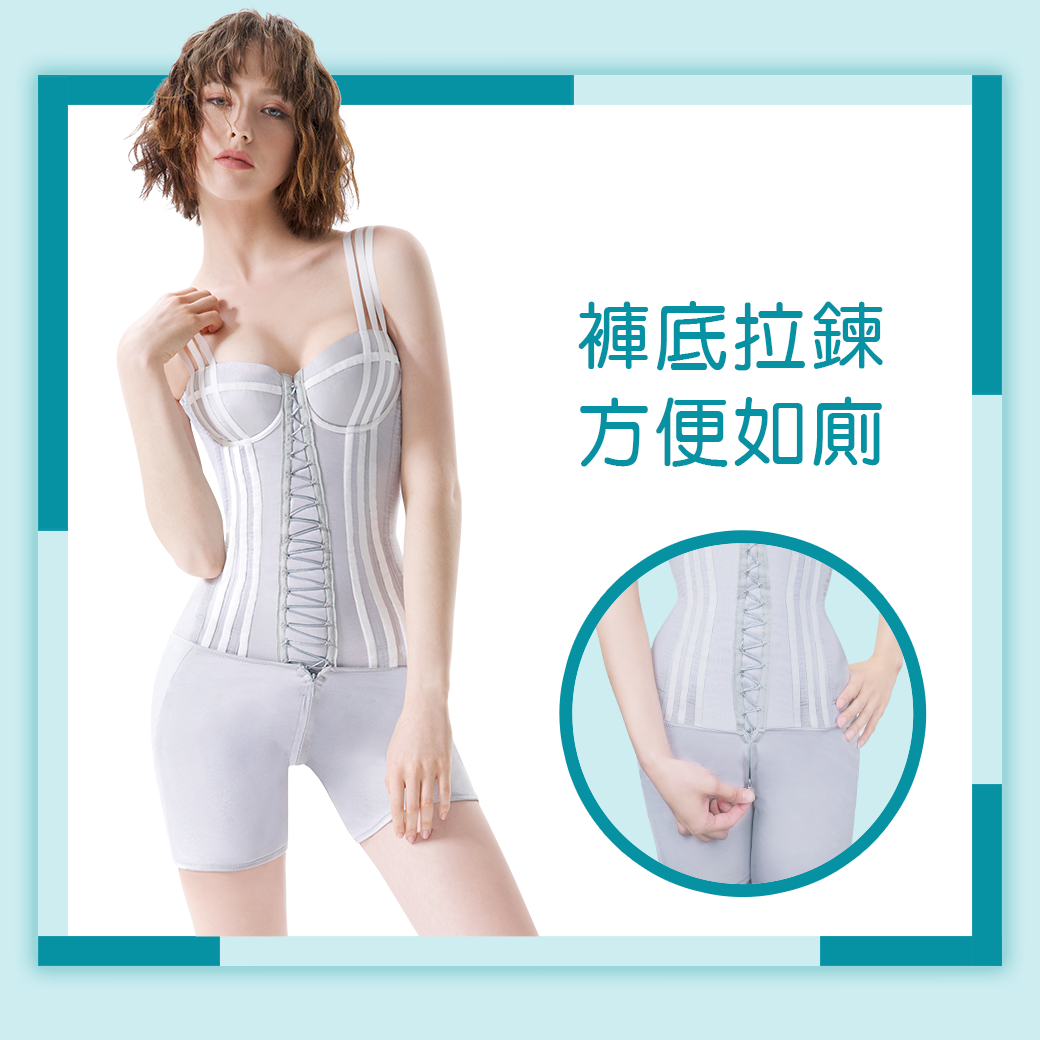 業界唯一連身式塑身衣,包含胸罩及褲底,同時延伸至臀腿,720°雕塑完美曲線