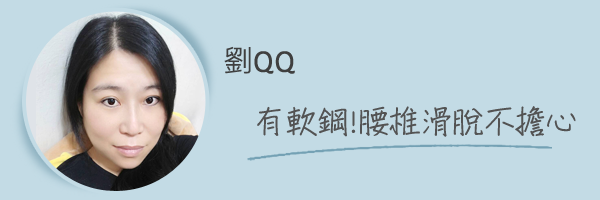 因為腰椎滑脫,醫生建議要穿鐵衣,後來選擇穿蘿琳亞,有軟鋼的支撐,以前無法蹲做運動,現在深蹲、運動都沒有問題