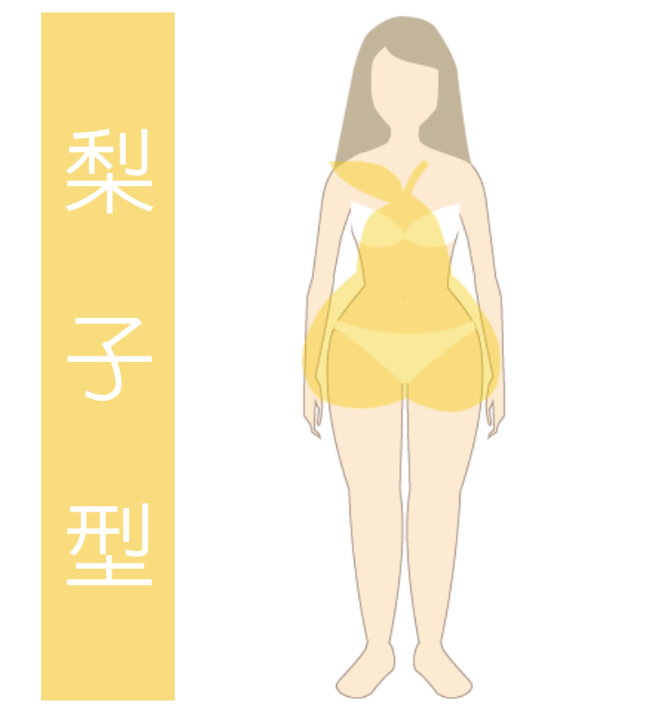 梨子型是亞洲女生常見的身型,因為贅肉都集中在屁股大腿,造成「假胯寬」問題,看起來就像是五五身比例,想穿合身洋裝小露性感, 但臃腫下半身,只能穿長裙遮肉肉,因此衣櫃內不會出現牛仔褲蹤跡!