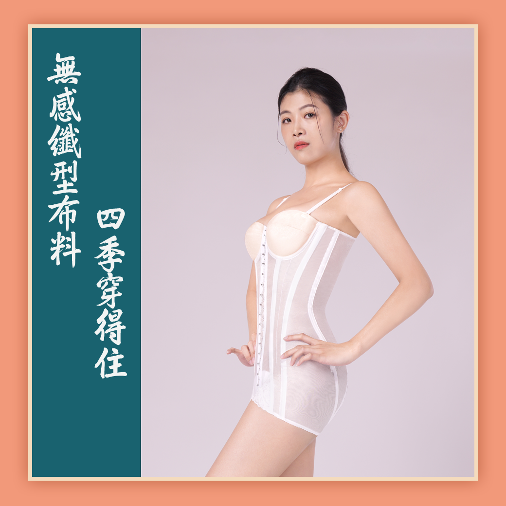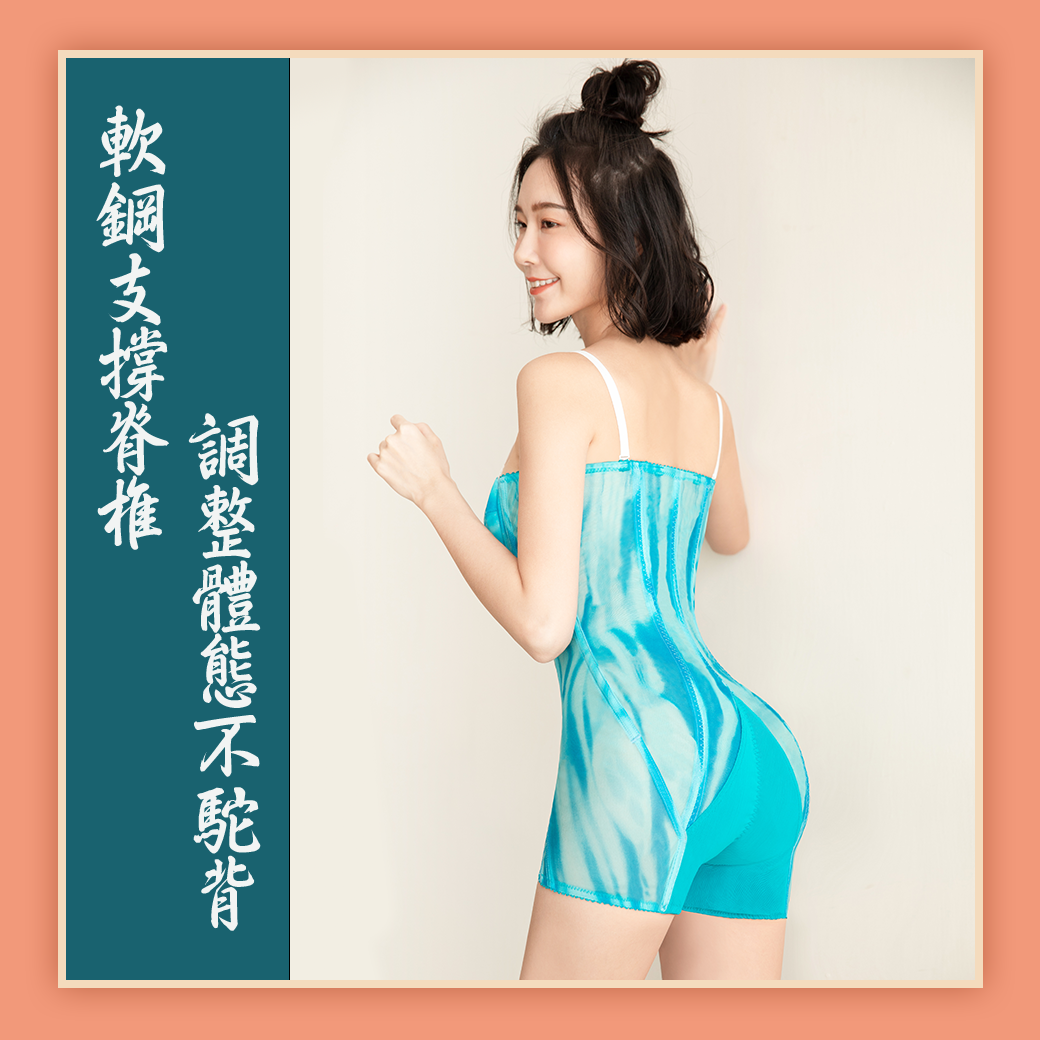 一體成型設計,包含胸罩設計,完整包覆胸型,集中托高、副乳不外露,同時可修飾腿型,褲管緊密貼合大腿,360°加壓腿部內外側,消除難瘦馬鞍肉